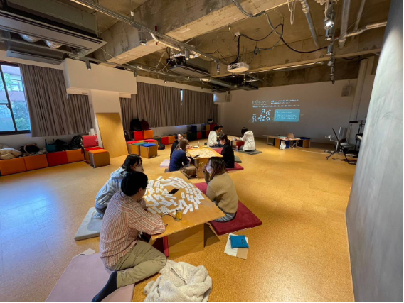 大学の中でも、会場をCOデザインスタジオとしたことで、リラックスした雰囲気を作り出すことができた。靴を脱ぎ、低い椅子や座布団に座ることで、会場の威圧感が抑えられているようであった。ただ、豊中キャンパスが広いことと、COデザインセンターの場所がわかりにくいことから、迷ったという参加者もいた。